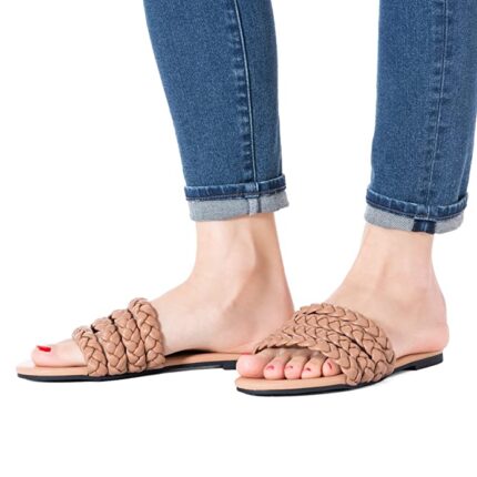 Women Flat Sandals Braided Leather Crossover Nude Dressy Fashion Evening Party Wedding Sandals, B54 Nude, 8