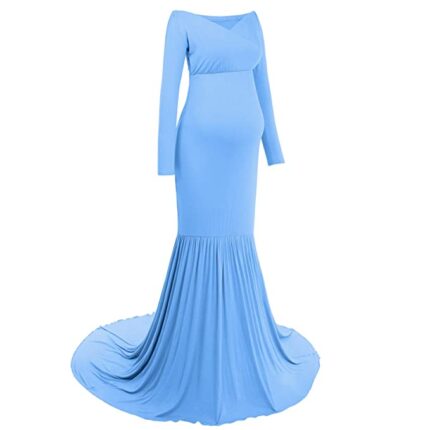 Product Details Material CompositionLace StyleClassic PatternPatterned Neck StyleV-Neck Country of OriginChina About this Item ?? IDEAL VOGUE CHOICE:Pregnant women s sexy floral lace long sleeve off shoulder maxi trailing photography long sleeve dress,fresh thin solid color off pullover slim fit fancy costume dress For baby shower, bridesmaids, photo prop ,Wedding ?? EXCELLENT FABRICS:Made of high quality Cotton+Polyester+Lace,Soft and stretchy fabrics, adds lining inside, comfortable to wear, A textured lace maternity maxi Fishtail Full Length Gown ??Features: Off Shoulder, Long Sleeve, Solid Color, Pullover, Slim Cut, Floor Length,High elastic waist,Stretchy lace,Full length; Elegant lace Gown style makes your photography Splendid on vision;No worry for the waistline which is from the top belly,Deep cross v-neck design, all-over delicate floral lace dress with soft lining, beautiful flower trim decor at neckline and cuff the waistline which is from the top belly; ?? SELECT SIZE:Available for size S-XL,Dress see through,you are kindly advised to wear an strapless bra or slip;Mermaid slim fit gown with sexy lace outlines your perfect shape effortlessly,Very stretchy fabric fits Most kinds of shape of expectant mothers ?? MULTI-PURPOSE:Perfect for Photo shoot,photography studio,baby shower,engagement,anniversary,birthday,wedding,a growing belly and soon to be nursing mother,loungewear,preparing with exquisite Sash Belt and Flower Crown would be a great choice, photo shoot to record such a magical time